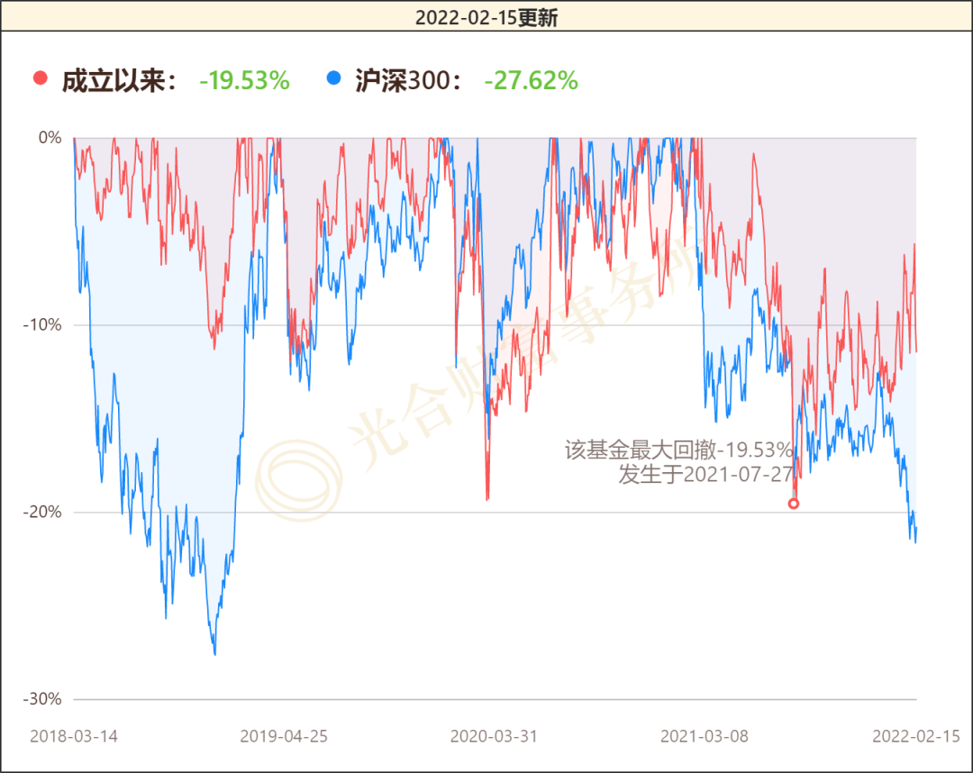 嘉實金融精選股票成立以來的最大回撤發生在去年7月份,當時跌了-19.53%,之后基金的跌幅都明顯好于滬深300。