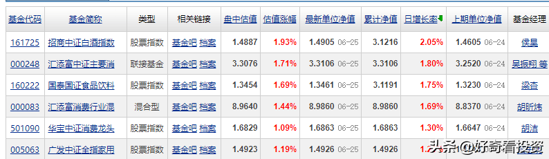 7、富國中證消費50:白酒、免稅、食品類、調味品、家具等。整體持倉行業相對均衡。