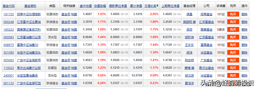 易方達消費行業混合(偏必須消費):一半以上倉位的白酒,兼顧豬肉、家電免稅等。