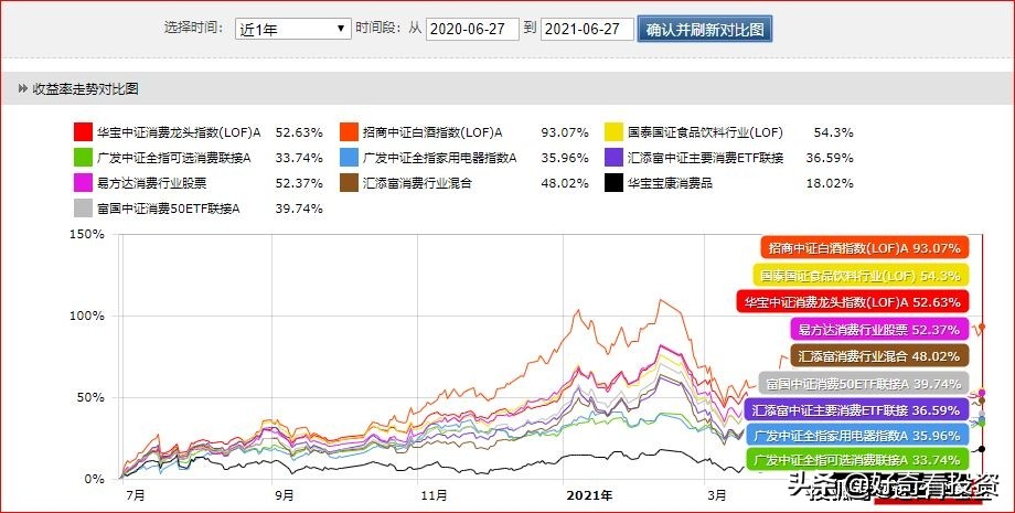 白酒、食品飲料、消費龍頭等最強消費指數,PK易方達、匯添富消費