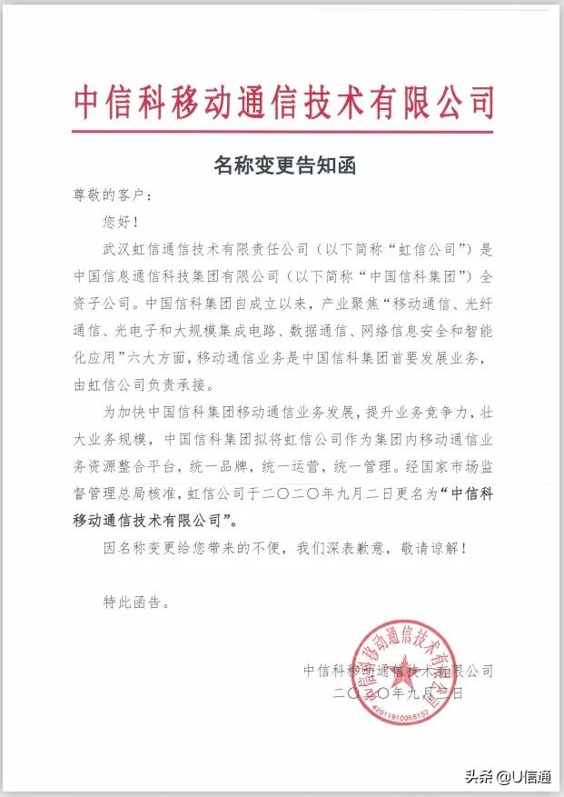 首先,從武漢虹信更名看起。據資料顯示,2020年9月份,武漢虹信,全稱“武漢虹信通信技術有限責任公司”,已變更名稱為“中信科移動通信技術有限公司”。