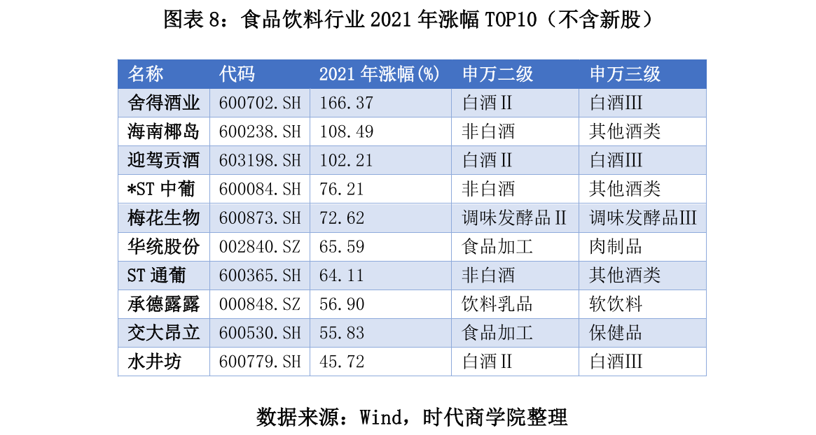 圖表8:食品飲料行業2021年漲幅TOP10(不含新股)