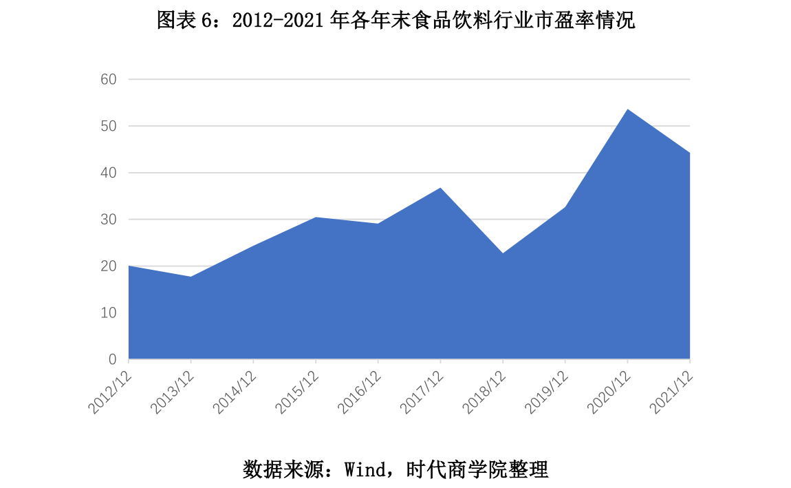 圖表6:2012-2021年各年末食品飲料行業市盈率情況