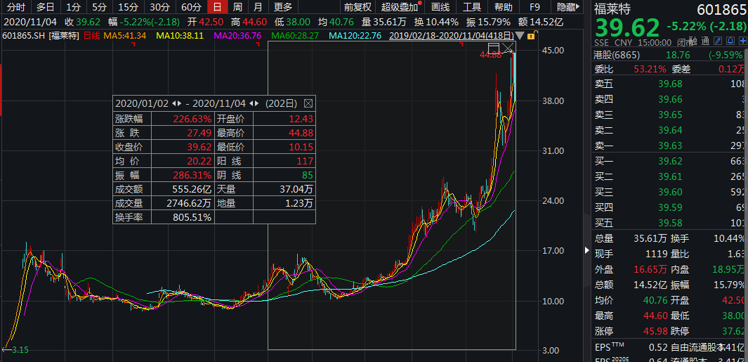 光伏玻璃價格的連續跳漲,這也使得該行業的供應商備受資金追捧。從年內漲幅來看,總市值669億元的福萊特漲幅最大,為226.63%,同時其港股福萊特玻璃年內大漲265%。