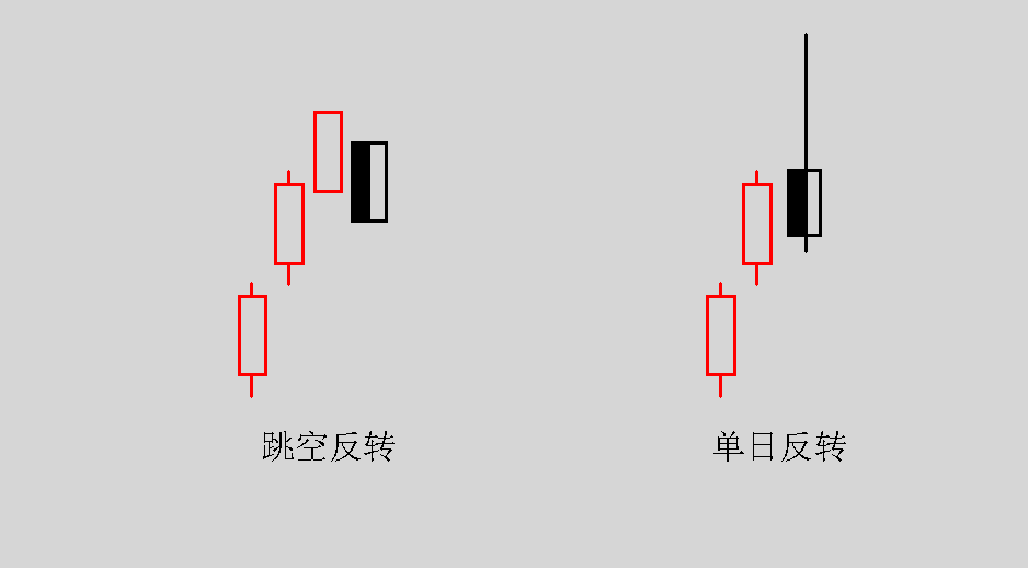 跳空反轉是指股價連續上升,某日突然低開低走,且收盤價位于當日最低價附近。單日反轉是指在高價區,某日連續創出新高后,后勁不足,在最低價附近收盤,且收盤價比前日還低,留下極長的上影線,是大市見頂的信號,應堅決賣出手中的股票。