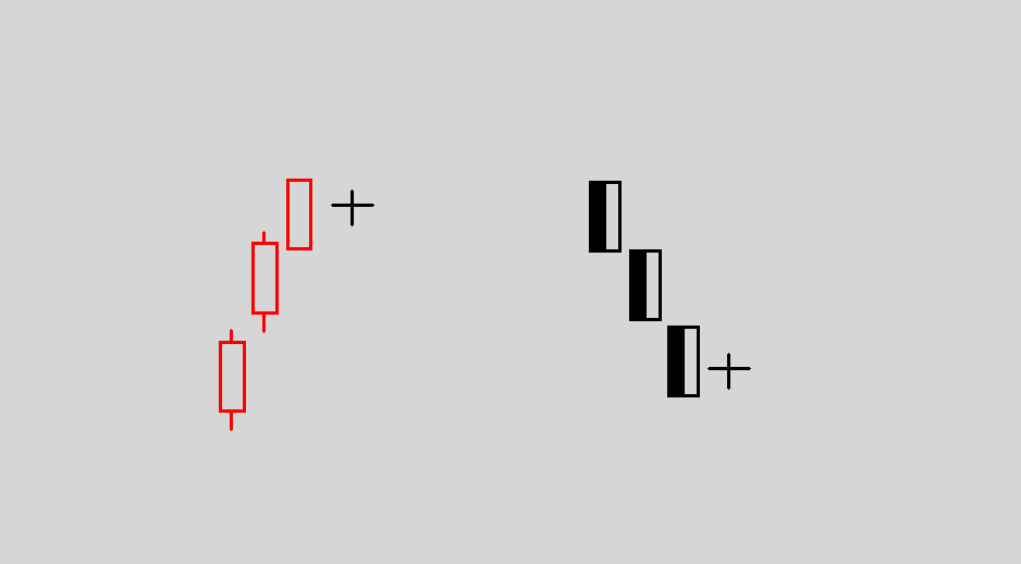 三、十字星:在高價區低價區出現往往是值得警戒的信號,出現十字星后能否出現反轉關鍵看第二天的K線形態,若第二天出現相反的趨勢且力度較大,往往是反轉的信號。