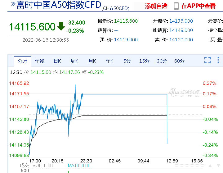 截至12點30分,富時中國A50指數CFD小跌0.23,看下圖。
