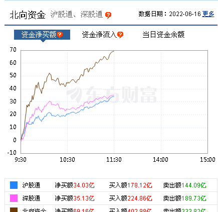 今天上午,北向資金凈流入69.16億元,滬股通凈流入34.03億元,深股通凈流入35.13億元。