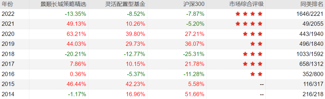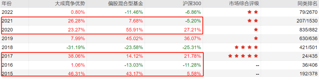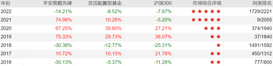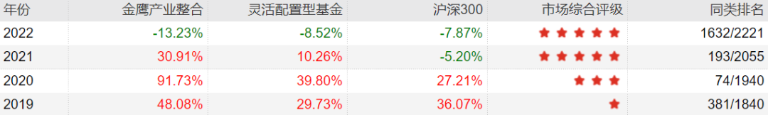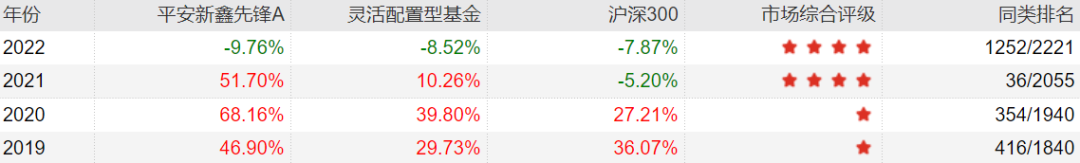 所以咱們雖然看到老曹19、20年業績很差,看全市場基金歷史業績排名肯定選不中它,但一對比又會發現,21年他的業績竟然又很好,排名前列。