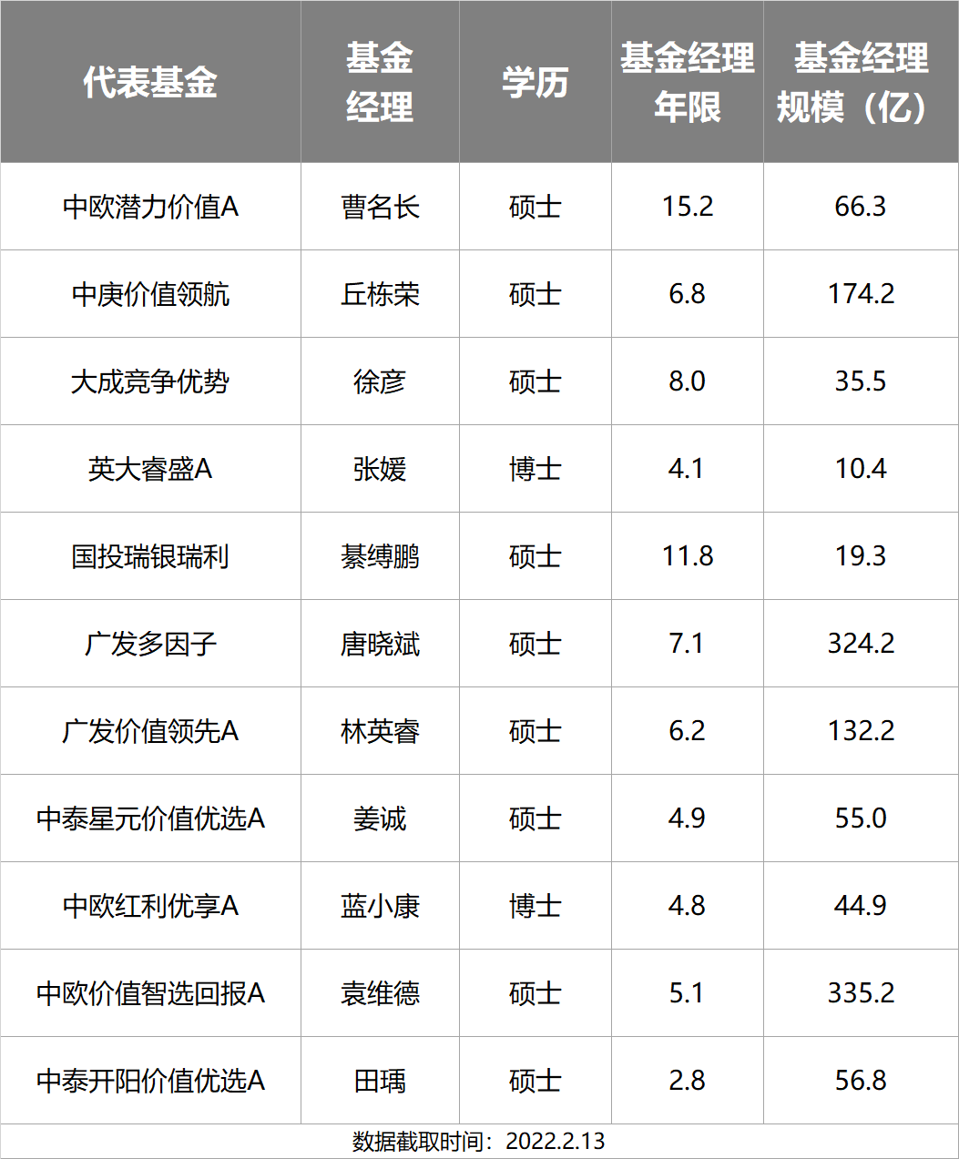 列幾個例子,曹名長,他屬于中小盤價值風格,主要是買一些估值很低,高股息的公司。