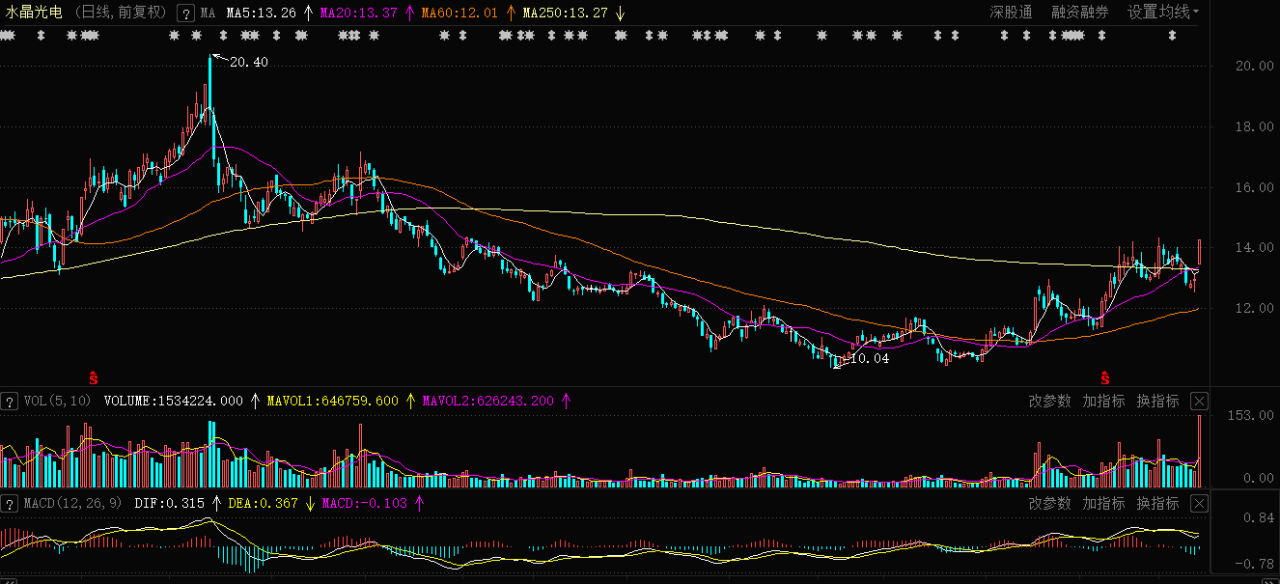 水晶光電短線受熱錢炒作,今虎榜中全部為游資參與,買入占比14%稍大于賣出占比10%,股價跳空突破年線,且是首板,短線可能有慣性拉升的機會。