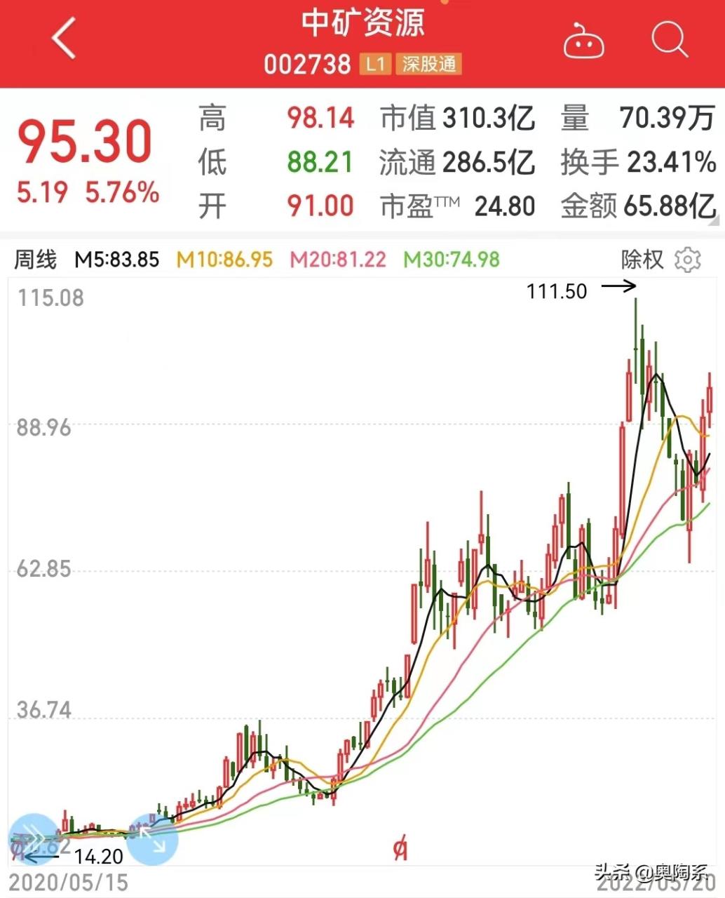 其中未來三年凈利潤復合增速超過100%的有六家。分別是兄弟科技,江特電機,中礦資源,內蒙華電,好萊客,合縱科技。兄弟科技股價近10個月累計上漲77%(從2021年7月最低3.43元每股上漲至目前的6.07元每股),江特電機股價近兩年累計上漲17倍(從2020年5月最低1.25元每股上漲至目前的22.10元每股),中礦資源近兩年累計上漲571%(從2020年5月最低14.0元每股上漲至目前的95.3元每股),內蒙華電近9個月累計上漲64%(從2021年8月最低2.25元每股上漲至目前的3.7元每股),中礦資源近兩年累計上漲571%(從2020年5月最低14.0元每股上漲至目前的95.3元每股)。