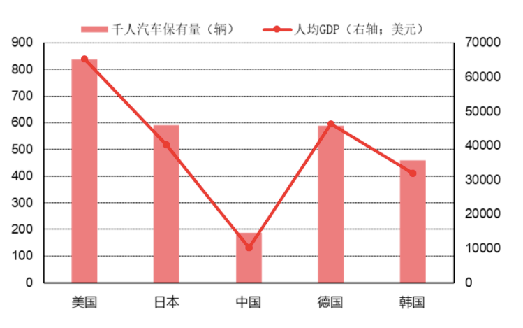 我國人均汽車保有量水平比較低,未來潛力巨大
