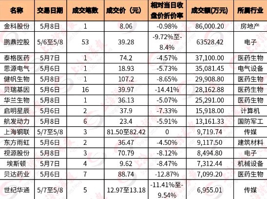 行業方面,生物醫藥、電子、傳媒等板塊近日大宗交易成交活躍。