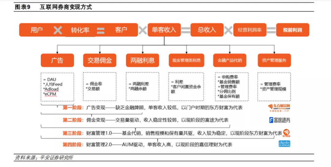 代銷、居間服務都賣別人的基金產品,自己不承擔風險,雖然風險低,但是很難賺錢。這類業務偏互聯網性質。