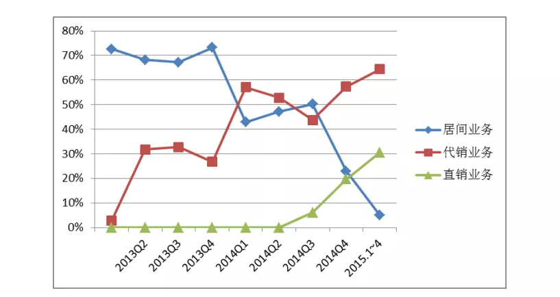 當公司推薦的個人客戶或機構客戶成功購買私募產品后,公司將向私募公司收取一定比例的服務費。這塊業務在之前是主要收入來源,2014年占比75%。