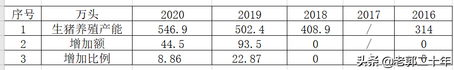 2016年做的規劃2020年年底實現550萬頭生豬產能的規劃,實際是546.9萬頭,差了3.1萬頭,完成率百分之98以上,中規中矩,完成而已,難道是數字規劃?哈哈 。