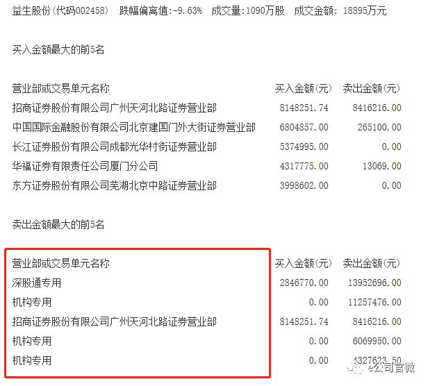 益生股份賣出前五名中,機構專戶占據了三席,累計占總成交比例的11.46%。而民和股份賣出前五席位中,機構更是占據了四席,累計占總成交比例的17.65%。