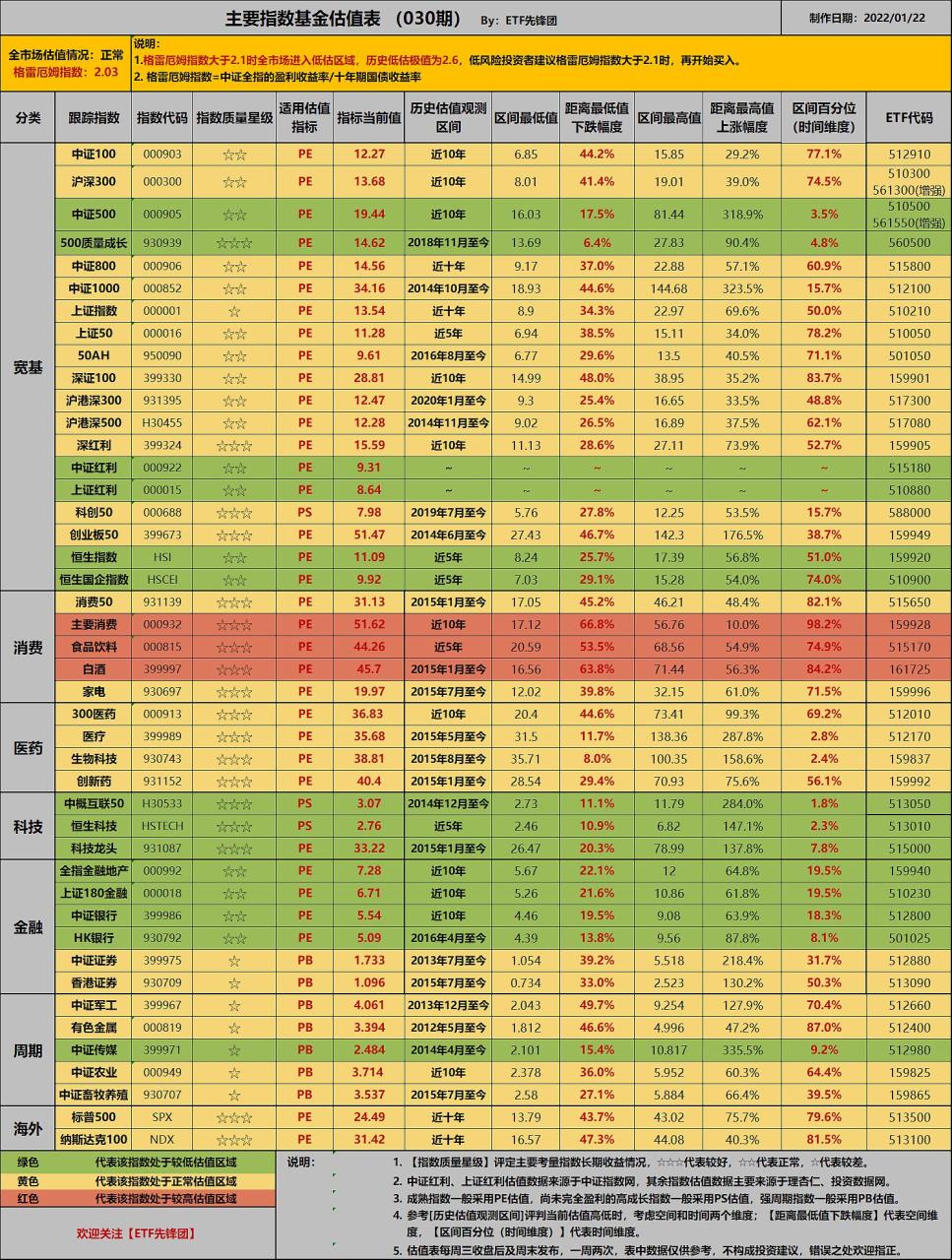 3. 為了方便讀者更清晰的一眼分辨出指數大致估值情況,表中綠色代表該指數處于較低估值區域;表中黃色代表該指數處于正常估值區域;表中紅色代表該指數處于較高估值區域。