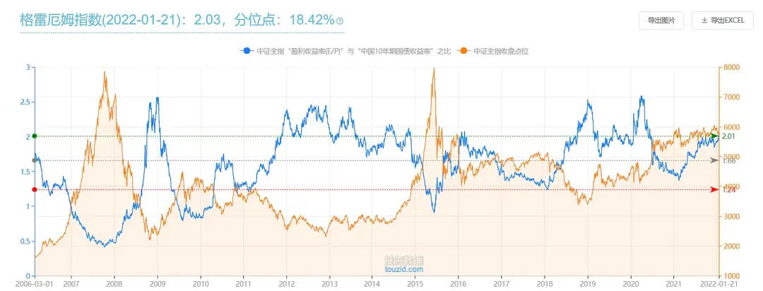 在國債利率下降和股市調整的推動下,格雷厄姆指數破2,差不多創近18個月新高,A股全市場繼續向低估分界線2.1靠近。