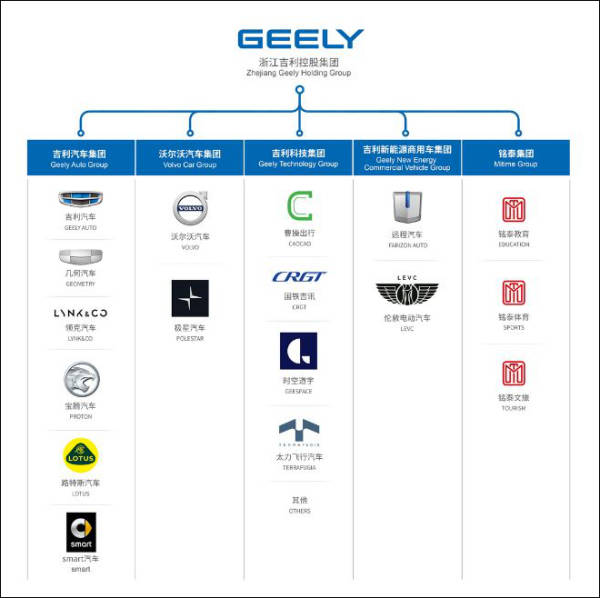 吉利控股集團旗下全部業務