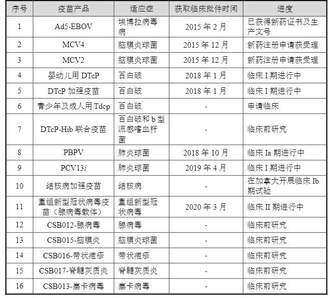 康希諾16種創新疫苗產品