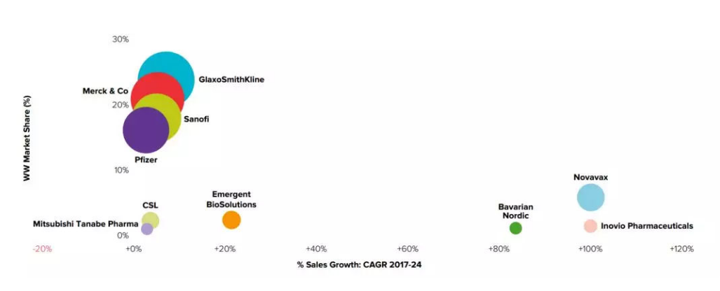 預測2024年全球疫苗市場份額,資料來源World Preview 2018、Outlook to 2024,圖片來源于高特佳投資官網