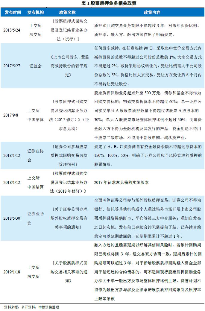 2013年5月,上交所、深交所發布了《股票質押式回購交易及登記結算業務辦法(試行)》,對融入方、融出方等作出了規定,且明確了期限不得超過3年,該制度的發布為券商開展場內股票質押業務提供了制度,此后,場內股票質押業務迅速發展。
