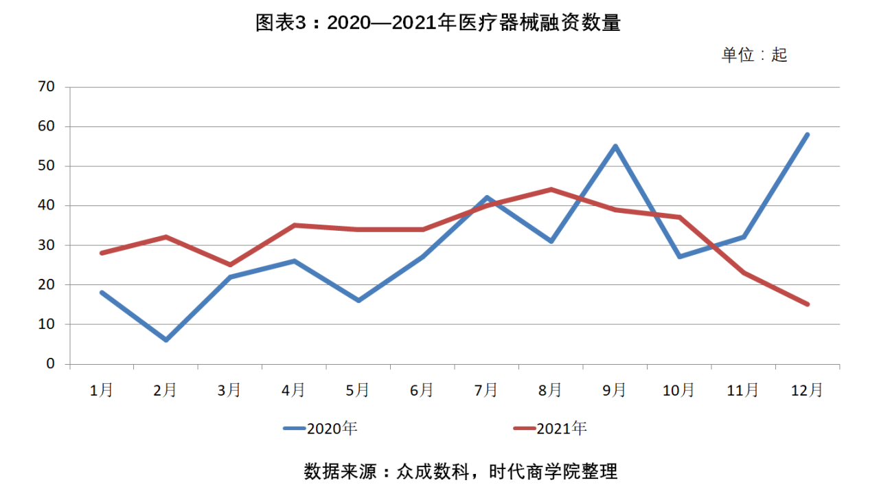 圖表 3:2020—2021年醫療器械融資數量(單位:起)