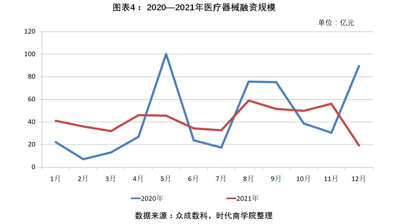 圖表 4:2020—2021年醫療器械融資規模(單位:億元)