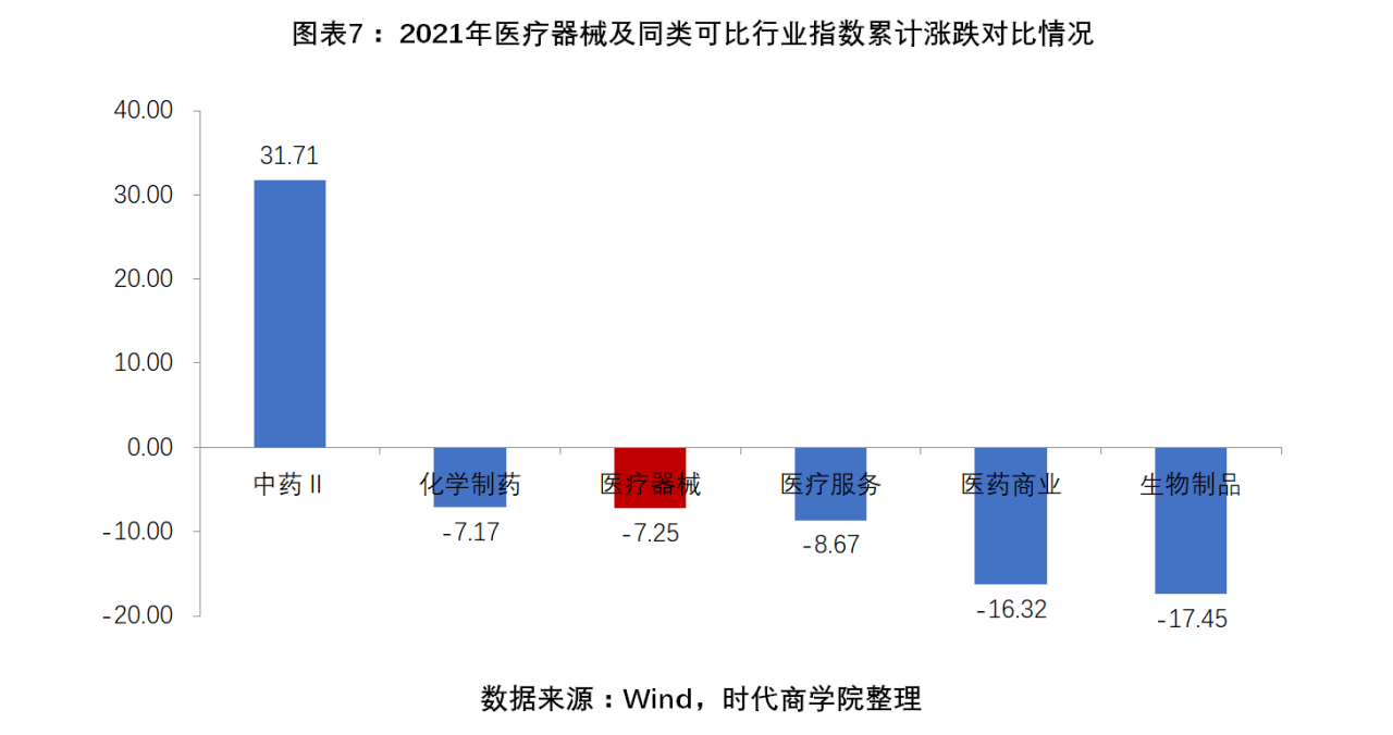 圖表 7:2021年醫療器械及同類可比行業指數累計漲跌對比情況