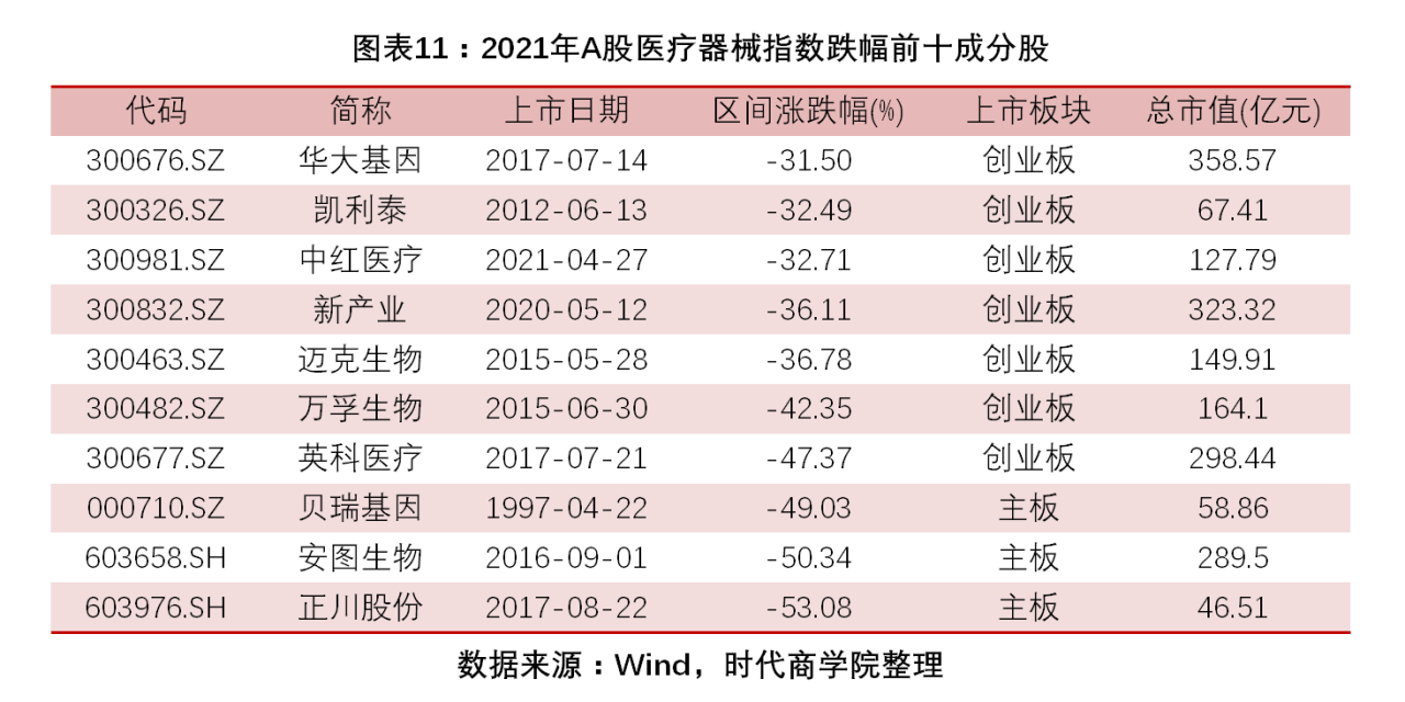 圖表 11:2021年A股醫療器械指數跌幅前十成分股