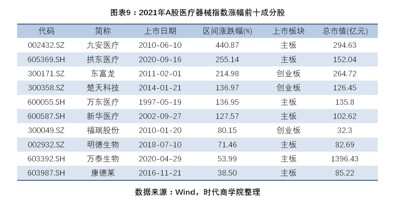圖表 9:2021年A股醫療器械指數漲幅前十成分股