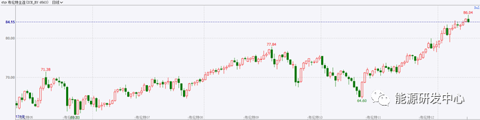 原油價格觸及86美元之后開始回調,剛好達到2018年的最高點附近。未來市場何去何從,就看這一重要的位置能否被有效突破。回想2018年,當時的情況與現在有所不同,當時原油價格之所以能夠觸頂回落,主要原因是美股的崩盤,帶動了宏觀市場的悲觀情緒,畢竟當時中美貿易戰仍然在進行,全球不穩定性比較大。而且在當時,全球市場的需求并沒有想象中那么好,原油庫存處于不斷累庫的階段,同時歐洲的汽油裂解價差甚至走出了幾年以來的最低值。因此,需求端的拖累以及宏觀市場的拖累,導致原油價格在觸及86美元之后開始大幅回落。之后,由于美國對于高油價的忍耐已經到達了極限,特朗普突然間釋放出伊朗的原油產量,進一步導致了原油價格的崩盤。最終,原油價格從86美元一路下行至50美元,這一波超過30多美元的跌幅令市場感到震驚。