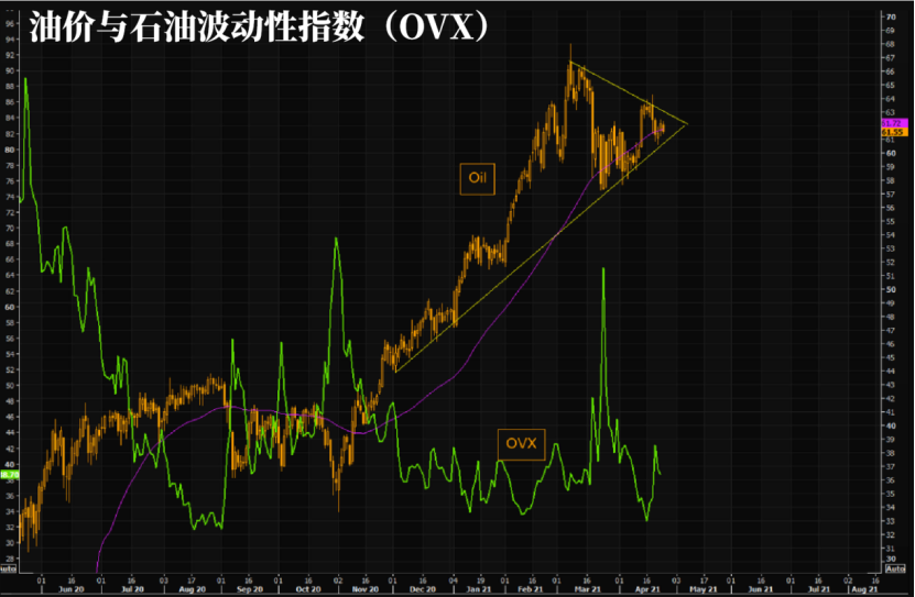 原油波動指數(OVX)在過去幾個交易日中有所下降,但仍高于近期低點。