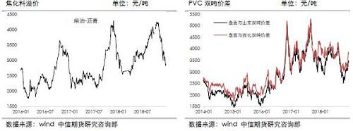 整體化工品在這波回調中相比原油相對抗跌:此輪油價上漲和下跌,整體化工品的彈性是不及原油的,上漲幅度沒有原油大,下跌幅度也不及原油,分品種去看,根據我們對10月份以來主力合約價格的統計,最跟跌依然是瀝青和燃料油兩個能源品種,分別跟跌77%和81%,另外就是基本面和原油共振的甲醇,跟跌67%,最不跟跌的是跟原油相關性最弱的PVC,僅跟跌16%,而其他品種由于前期下跌持續去庫存后基本面壓力并不大,所以相對原油相對抗跌,基本上在50%以下;最后節奏上,PVC和PTA提前于原油見頂,其他品種跟隨油價見頂,這也顯示基本面對化工品價格的影響力。