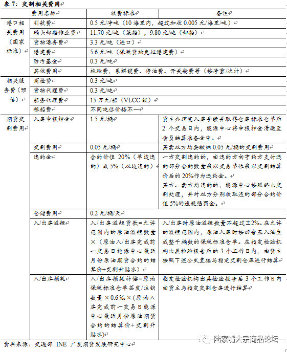 完成原油期貨合約的實物交割將會產生多種費用,主要包括三個大類:港口相關費用、相關服務費用、交易所交割費用,其中港口相關費用的收費標準依各港口情況而定。