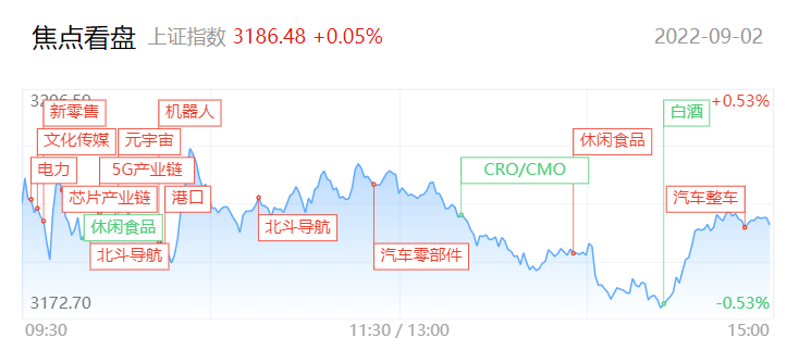 大盤全天高開后震蕩,三大指數漲跌不一,權重股表現低迷,上證50指數創調整新低。盤面上,北斗導航板塊爆發,板塊內個股掀漲停潮,燦勤科技、神宇股份20CM漲停。導航股大漲帶動通信、軍工、芯片等相關板塊集體走強。此外低位題材股表現活躍,東數西算、游戲、元宇宙、傳媒等板塊輪番走強,二六三、奧飛娛樂等漲停。賽道股上午展開反彈,但午后逐步震蕩回落,反彈力度較弱。下跌方面,食品等消費板塊陷入調整。總體上個股漲多跌少,兩市超3500只個股上漲。滬深兩市今日成交額7466億,較上個交易日縮量482億,成交金額續創近期新低。