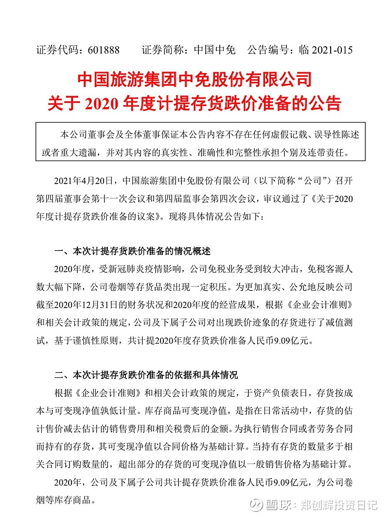 在昨天所有的公告中,只有一個公告像是利空的,就是中國中免的香煙計提存貨跌價9.09億元,2020年的凈利潤在61億元,這是在計提了9.09億元之后的凈利潤,這應該是一個相當不錯的好消息,因為年報在預告中已經爆出了在61億,而現在沒有偏差,大家心里已經接受了61億了,那么這9.09億就是額外的獎勵了。