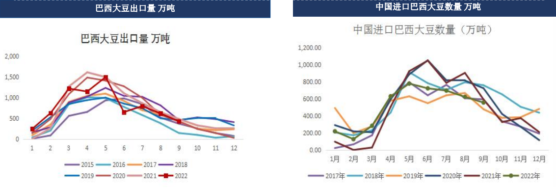 巴西政府公布的出口數據顯示,9月大豆出口量為429萬噸,去年同期為482萬噸。
