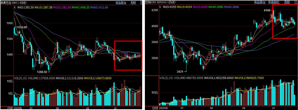 截止10月28日,10月份美豆上漲1.8%;大連豆粕2301合約收報4020元/噸,下跌79元,跌幅1.9%。