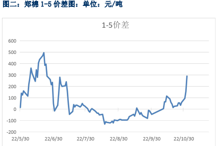 11月2日收盤,鄭棉2301-2305合約價差為290元/噸,價差較上一交易日上漲135元/噸。