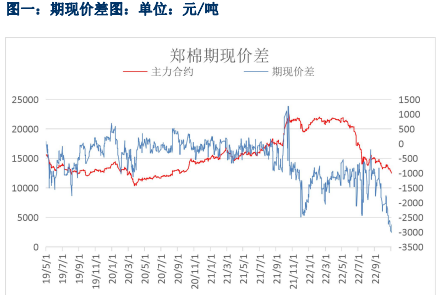 11月2日,鄭棉2301合約與CCI3128B指數期現價差為-2415元/噸,價差較上個交易日上漲335元/噸。