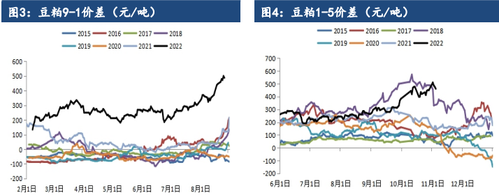 國內現貨基差方面,目前港口大豆庫存和庫存都處于偏低的狀態,01的高基差短期內將繼續維持,11月大豆進口到港預估為786.5萬噸,提升幅度并不顯著,12月或超過1000萬噸,故基差掉頭的時間點或出現于11月下旬。