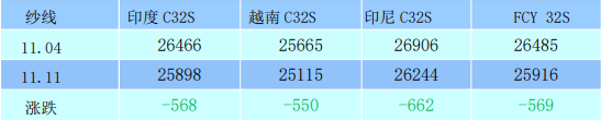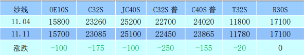 11月11日,以人民幣計價的外紗價格較11月4日集體下跌,因人民幣升值。