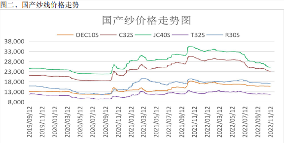 需求方面,海關總署最新數據顯示,2022年10月,我國出口紡織品服裝250.24億美元,同比下降13.53%,環比下降10.79%;其中紡織品出口113.69億美元,同比下降9.05%,環比下降5.80%,服裝出口136.55億美元,同比下降16.93%,環比下降14.56%。十月紡服類出口數據整體表現不佳。當前下游純棉紗市場弱延續平淡氣氛,紡企對于后市預期整體較為悲觀,認為中短期仍將維持弱勢格局。
