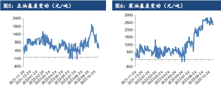 東遠大庫,24度,現貨,01+160。華南不定庫,24度,11月船,01+200。華南不定庫,24度,12月船,01+250。東莞庫18度,現貨,01+300。華東三級菜油報價:01+400元/噸(1-3月),05+900(2-5月),現貨01+2650。華東一豆基差報價:Y2301+1050元/噸(11月),Y2301+800元/噸(12-1月),Y2301+1100元/噸(2-3月)。