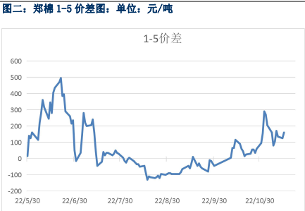 11月15日收盤,鄭棉2301-2305合約價差為125元/噸,價差較上一交易日上漲35元/噸。