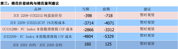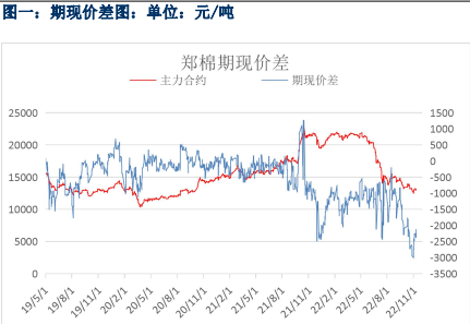 11月15日,鄭棉2301合約與CCI3128B指數期現價差為-1938元/噸,價差較上個交易日上漲79元/噸