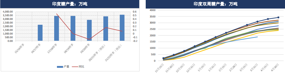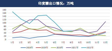 2022/23榨季截至11月15日,印度的食糖產量為199萬噸。受西部幾個邦的幾家糖廠開榨時間較晚的影響,當前食糖產量略低于去年同期的208萬噸。